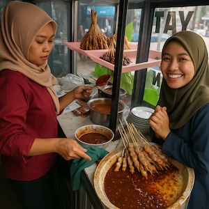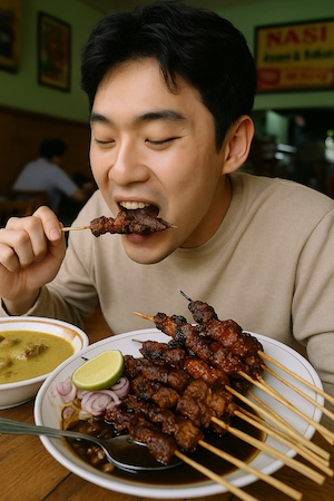 Rasanya khas, mirip sate Madura yang bener-bener nendang. Bumbunya tebal dan gurih, bikin puas tiap suapan.